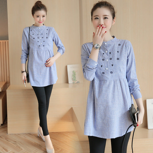 Mid-Length Fashion Striped Plus Size Maternity Dress
